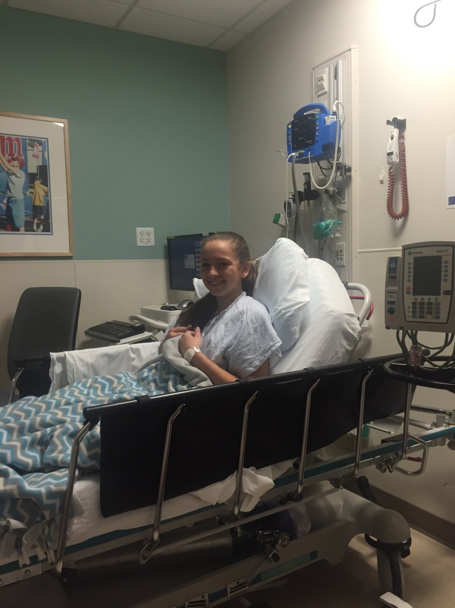 One of these branches is Postural Orthostatic Tachycardia Syndrome (POTS). This means that my body doesn’t regulate the blood flow to my brain correctly. When a person stands up their autonomic nervous system tells your blood vessels to constrict forcing blood to your brain. Blood vessels are conveniently made out of connective tissue, so mine are very weak and stretchy. This means that when I stand up the blood pools in my legs because my blood vessels are too weak to push the blood to my brain. This causes me to feel very light headed and even pass out from standing up. I recently got a PICC line placed. This is a tube that is threaded through my arm and up into a vein that sits just above my heart. This allows me to do home and mobile infusions of saline, or as us POTS patients think of it as liquid gold! Getting regular saline infusions helps boost my blood volume as POTS causes it to be lower than normal, it makes me less dizzy when standing or walking, and it gives me a boost of energy and keeps me hydrated. I have trouble hydrating myself because of Gastroparesis.